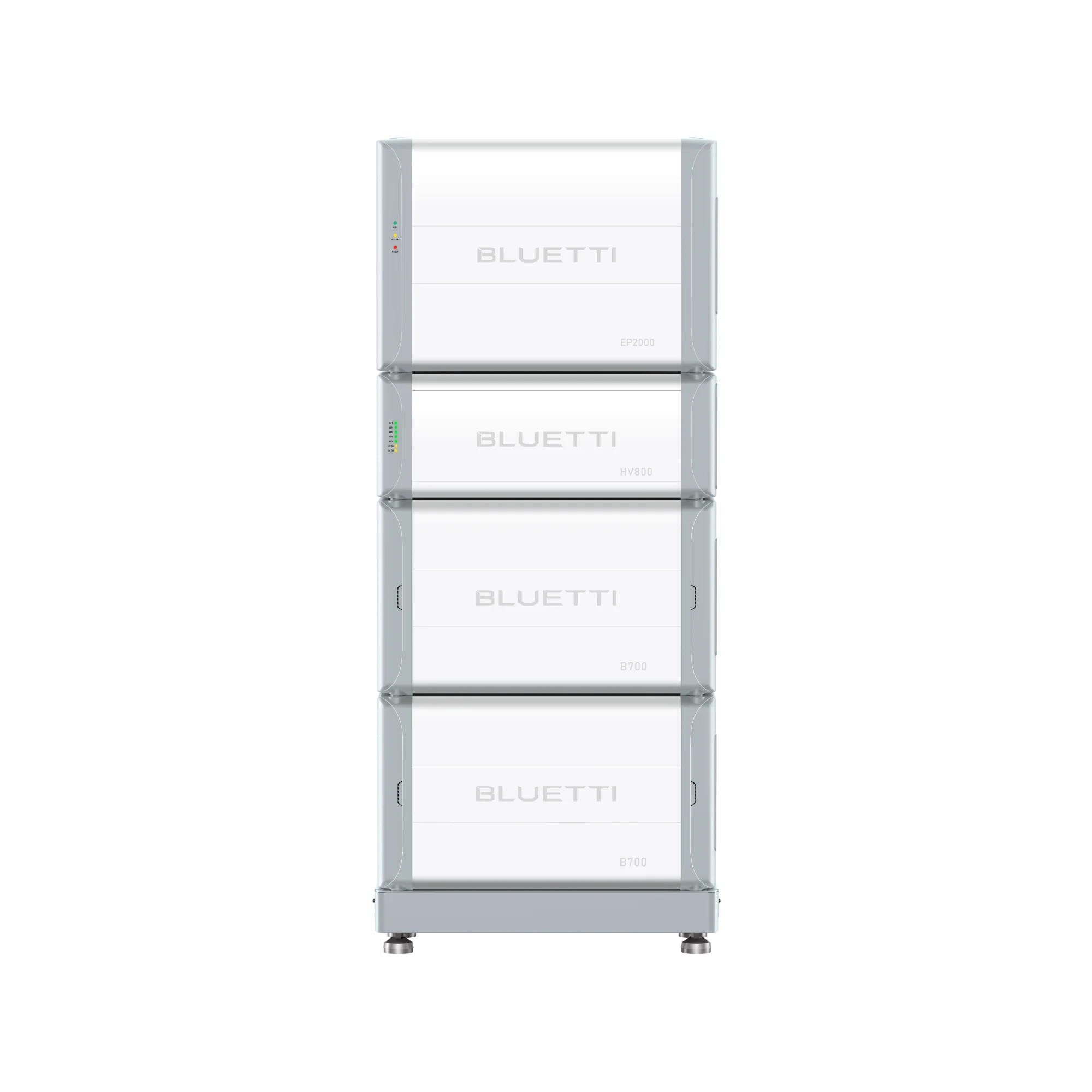 Das EP2000 ESS-System besteht aus einem Wechselrichter-Modul, einem Batterie-Controller (HV800) und zwei Speicherbausteinen (B700) mit jeweils 7,35 kWh Kapazität. In der Basisausstattung ist dieses ESS-System für die Grundversorgung eines kleinen Einfamilienhauses geeignet. Der PV-Eingang des EP2000 besteht aus insgesamt 4 Paaren MC4-Steckern. Zwei Paare sind dabei jeweils einem MPPT-Regler zugeordnet. Dadurch können beispielsweise zwei PV-Felder mit unterschiedlichen Ausrichtungen angeschlossen werden. Maximal ist der Anschluss von 30 kWp PV-Leistung am EP2000 möglich.