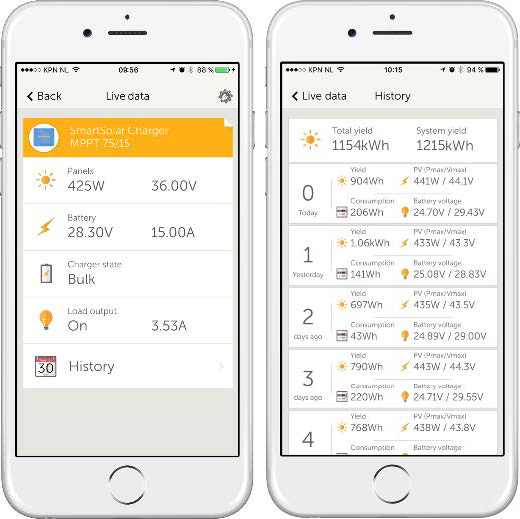 Ein passender MPPT-Laderegler mit Bluetooth-Schnittstelle ist bei dieser Version bereits im Lieferumfang enthalten - Smart Solar MPPT 75/10.