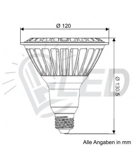 LED-Strahler PAR 38, 24x SMD Chip, rot, blau, kaltweiss, 30 Grad, E27, AC 100-240 Volt, Verbrauch ca. 12,5 Watt, ca. 500 Lumen