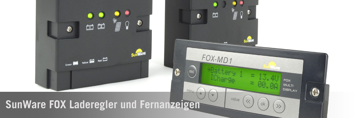 FOX-320 SolarladereglerDer FOX-320 ist ein Solarladeregler für 2 Batteriesysteme und Modulströme bis zu 20 A, geeignet für AGM-, GEL- und Blei-Säure-Batterien. Verbraucher können bis zu einem Stromverbrauch von maximal 20 A angeschlossen werden.Der adaptive Tiefentladeschutz überwacht und schützt die Batterie vor schädlicher Tiefentladung, alternativ kann die Nachtlichtfunktion genutzt werden. Die optimierte Ladekennlinie erzielt in Kombination mit der Hardware PWM-Regelung eine deutlich schnellere und schonendere Ladung der Batterie, gefährliche Gasung bzw. Überladung werden sicher verhindert.Mit dem FOX-320 können zwei Batteriesysteme geladen werden. Ab Werk werden 90 % der Energie in Batterie 1 und 10 % der Energie in Batterie 2 geladen. Der Regler erkennt die Systemspannung vollautomatisch. Die aktive Rückstromsperre garantiert den Rückstromschutz und ermöglicht einen extrem geringen Spannungsabfall zwischen Modul und Batterie. An den FOX-320 kann jederzeit durch einfaches Anstecken von nur einem Kabel das opional erhältliche Multi Display FOX-MD1 angeschossen werden. Hiermit können dann die aktuellen Spannungen und Ströme angezeigt und auch grafisch dargestellt werden. Mit der Programmierfunktion des FOX-MD1 können diverse Parameter verändert und abgespeichert werden.
