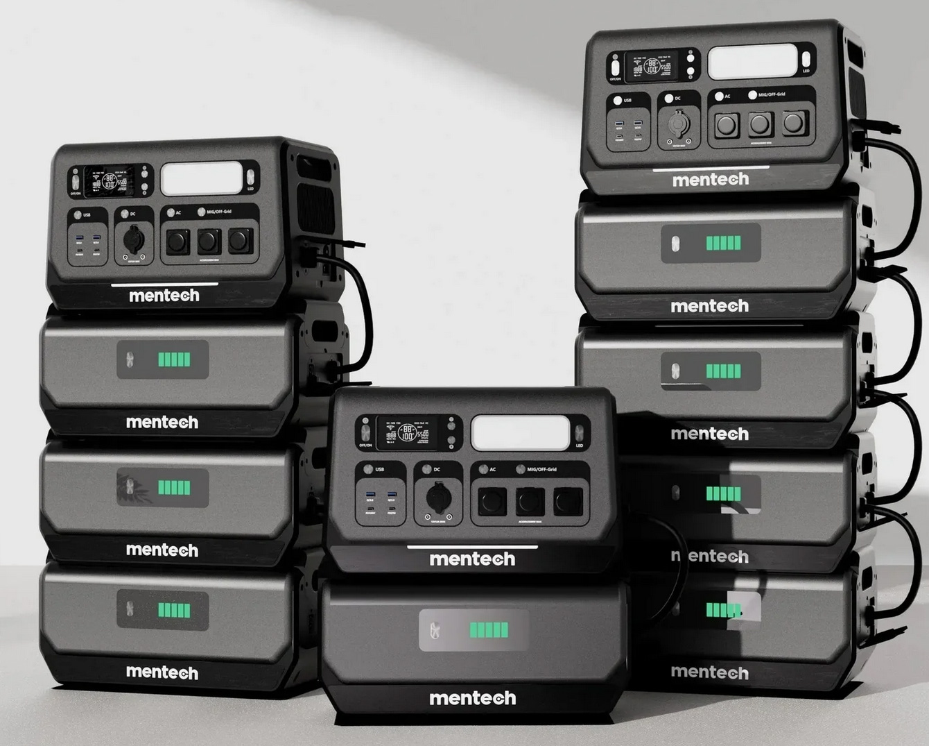 Erweiterbar auf bis zu 10 kWh Speicherkapazität mit optionalen Zusatz-Akkus vom Typ mentech E2000.
