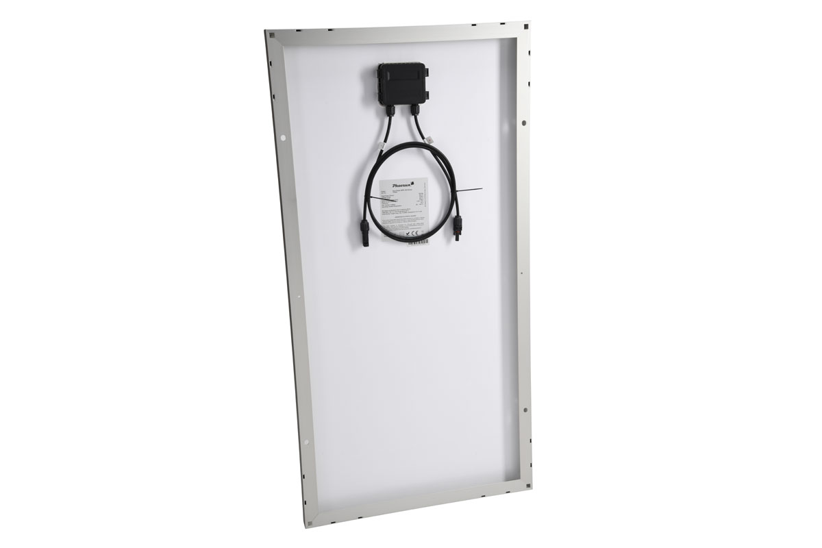 Hocheffizientes 12V Insel-Solarmodul mit rückseitig kontaktierten monokristallinen Solarzellen (SPR) und 120Wp Leistung. Die die rückseitige Kontaktierung der Zellen (SPR) verleiht der Moduloberfläche ein ästhetisch ansprechendes Design. Rahmenfarbe: silber
