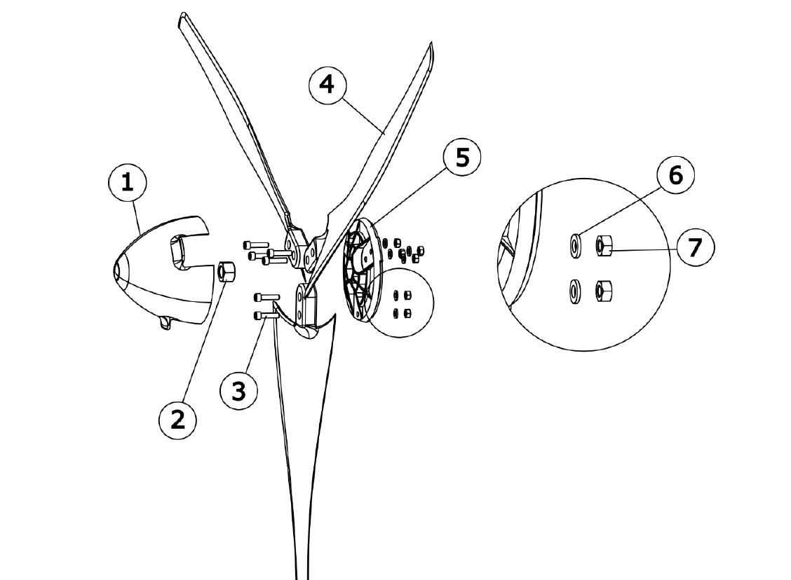 Die Rotorabdeckkappe (Nose Cone, Art.Nr. SW101) passend für die SilentWind Generatoren.