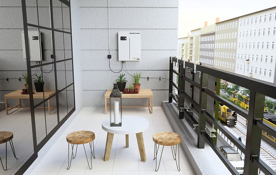 Bei dem Modell Lifelink Verlinkt handelt es sich um die LV-Variante der Lifelink-Serie mit einem Niederspannungs-Solar-Eingang mit MPPT-Tracker zum Anschluss von Solarmodulen mit Spannungen von 30 bis 45V. An den zwei Paaren MC4-Eingängen können insgesamt bis zu 1.000W PV-Leistung angeschlossen werden (2 x 20A).