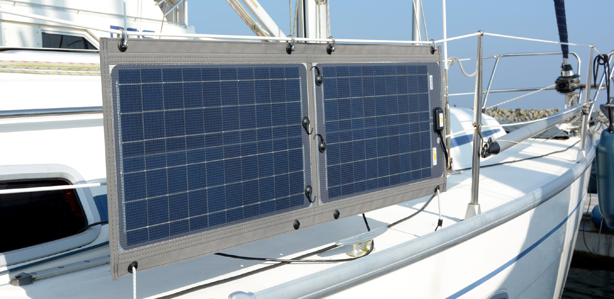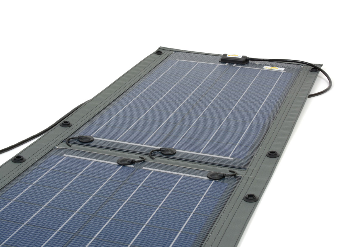In den Textilrand der RX-Module sind Befestigungsösen mit 9mm Innendurchmesser eingesetzt und ermöglichen unzählige Befestigungsmöglichkeiten. Durch die faltbare Ausführung kann das Modul leicht verstaut oder auf Reisen problemlos mitgenommen werden. Die Zellen sind durch die nur leicht flexible Trägerplatte aus Alu-Sandwich vor Zellbruch gestützt.