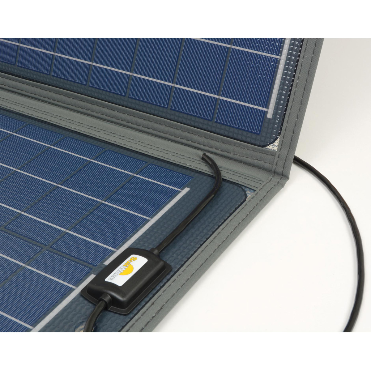 Die multikristallinen Hochleistungs-Solarzellen des Moduls sind in einem EVA Laminat und ETFE Deckschichten gegen Witterungseinflüsse geschützt. Selbst bei diffusem Licht oder auch im Winter produzieren die Solarmodule einen hohen Ladestrom.