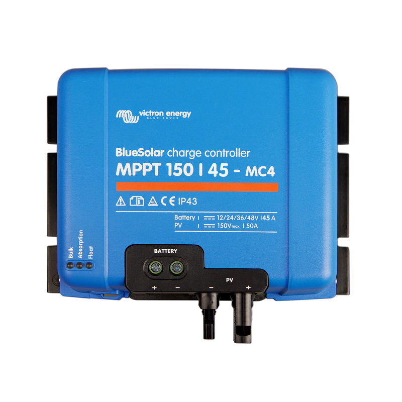 Der BlueSolar 150/45 MC4 ist ein Solarladeregler mit Maximum-Power-Point-Tracking (MPPT). Der Regler verarbeitet bis zu 45A bei einer Eingangsspannung von max. 150V. Passend für 12 V, 24 V oder 48 V Batteriespannung. Mit MC4 Anschlüssen am Solareingang!