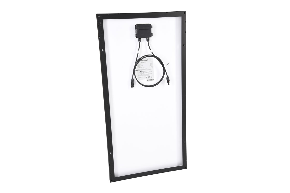 Hocheffizientes 12V Insel-Solarmodul mit rückseitig kontaktierten monokristallinen Solarzellen (SPR) und 120Wp Leistung. Die die rückseitige Kontaktierung der Zellen (SPR) verleiht der Moduloberfläche ein ästhetisch ansprechendes Design. Rahmenfarbe: schwarz